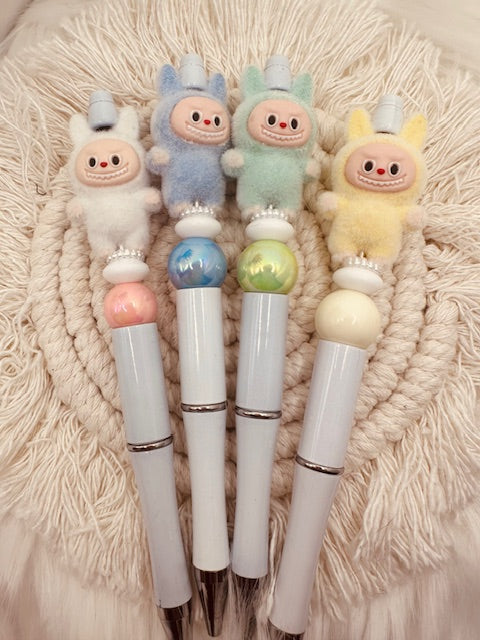Meet your new favorite writing companion! These adorable Little Monster Pens feature charming silicone and acrylic beads in vibrant colors—choose from green, yellow, white, or blue. Each pen showcases a white opalescent base with black refillable ink, and bead designs vary uniquely by color for extra personality. Bonus: every pen comes with an extra refillable ink cartridge. Simply twist the bottom to swap in fresh ink whenever you need it. Perfect for adding a splash of whimsy to your desk or gifting to fellow pen enthusiasts!*Each pen comes with one extra ink refill.